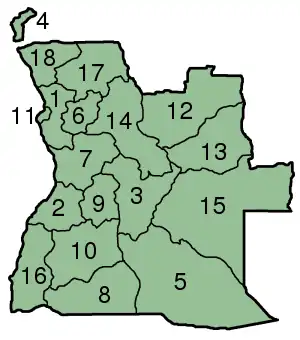 Kody ISO 3166-2 dla 18 prowincji Angoli.