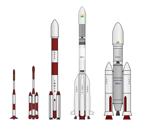 - Polar Satellite Launch Vehicle (PSLV) – czterostopniowa rakieta nośna ze stopniami na stałe jak i ciekłe paliwo. PSLV może umieścić na orbicie polarnej ładunek 1600 kg. Jest używana przez ISRO do wynoszenia satelitów małej i średniej wielkości.