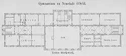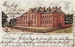 Budynek liceum przy ul. Gimnazjalnej został wzniesiony jako Królewskie Gimnazjum w latach 1897–1898 według projektu radcy budowlanego Ritzela[2]. Powstał on w miejscu dawnego cmentarza parafii ewangelickiej. 11 października 1898 budynek gimnazjum poświęcił Alfons Nowack – nauczyciel religii[3]. Pierwszym dyrektorem placówki był doktor August Jung[4].