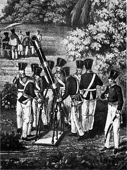 ![]() Szturm jednej z głównych palisad otaczających Rangun 8 lipca 1824 roku | |||