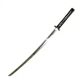 2. The differences between a katana and a ïaito. Katanas-Samurai. [dostęp 2024-07-07]. Cytat: They are sometimes called mogito (imitation of a sword) when they are made of aluminum alloy. (ang.).