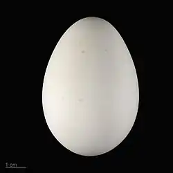 Zniesienie liczy od 1 do 4 jaj[10] (według innego źródła 2–5[29]). Skorupka jest matowobiała, wraz z postępem inkubacji szybko pokrywa się brązowymi plamami[10]. 14 jaj zbadanych przez Marchanta i Higginsa miało wymiary 61,4–69,1 na 42,4–47,0 mm. Schonwetter (1967) dla nieokreślonej liczby jaj podał więcej parametrów: 57,5–70,0 na 38,6–48,0 mm (średnio 64,8 na 44 mm), średnia masa jaja: 67 g[30]. W gniazdach badanych przez Lowego przeciętne gniazdo w jednym roku zawierało 2 jaja (średnia 2,29), w następnym również, przy średniej 2,42[10]. W sezonie 2016–17 w dorzeczu Murray-Darling średnia liczba jaj wyniosła 2,4[27].