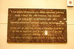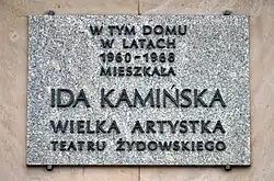 Tablica pamiątkowa na fasadzie kamienicy Gustawa Pala przy Alejach Jerozolimskich 101 w Warszawie, w której mieszkała Kamińska[11].