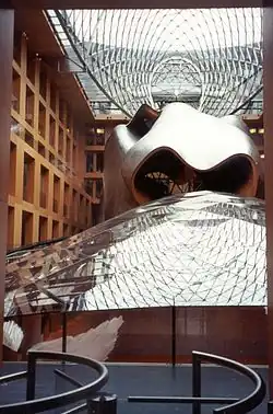 Ideogram DG Bank w Berlinie ukazuje wyraziste przeciwstawienie formy zewnętrznej budynku z ukształtowaniem wewnętrznego atrium. Fantazyjne atrium jest jakby morfologiczna formą wtłoczoną w regularny i monumentalny kubik. Ideogram jest jednocześnie zobrazowaniem kształtu rzutu i przekroju budynku.