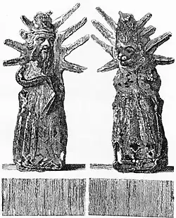 Figurki te miały rzekomo pochodzić z Radogoszczy i przedstawiać wyobrażenia bóstw słowiańskich, m.in. Radogosta. Wiele z nich opatrzonych jest napisami runicznymi, rzekomym pismem słowiańskim. Znaczna część figurek przedstawia postacie z lwimi głowami i bujnymi grzywami[1].