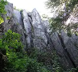 Igły Olkuskie to zbudowany z twardych wapieni skalistych szereg skał o kształcie turni i iglic. Mają pionowe lub połogie ściany o wysokości od 16 do 20 m. Uprawiana jest na nich wspinaczka skalna[3].