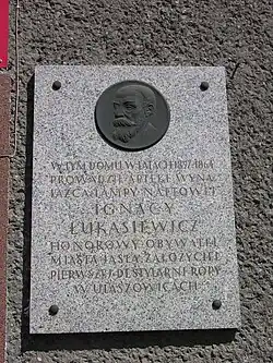 - ↑ Honorowi Obywatele Miasta. Ignacy Łukasiewicz, Urząd Miasta w Jaśle [zarchiwizowane 2019-09-25].