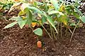 Dorasta do 2 metrów wysokości, posiada liście szerokolancetowate. Kwiaty duże, żółte zebrane są w szczytowe jajowate kłosy.