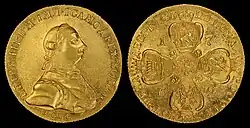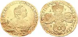 Wprowadzony za panowania cesarzowej Elżbiety imperiał był monetą 10-rublową zawierającą 11,61 g złota o próbie 916 (za Pawła I i Aleksandra I wynosiła ona 987). W obiegu znajdował się także 5-rublowy półimperiał o wadze 5,85 g. Po reformie walutowej Kankrina (1838) wartość imperiała ustalono na 10 rubli 30 kopiejek.