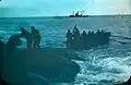 Wyprawa łodziami została wymuszona po tym jak 8 kwietnia pękła kra, na której znajdował się Patience Camp[35]. Załoga przygotowała wszystkie szalupy to przeprawy – Shackleton objął dowództwo „James Caird”, która mieściła 11 osób; Worsley – „Dudley Docker” z 9 osobami, a Hudson i Crean mieli poprowadzić „Stancomb Wills”[36]. Łodzie częściowo żeglowały, częściowo były unoszone na krach – postęp w podróży był powolny i niekoniecznie w pożądanym kierunku[37]. Z uwagi na niekorzystny wiatr Shackleton musiał zmienić plany i zdecydował się na lądowanie w Zatoce Nadziei[38]. Jednak wkrótce, biorąc pod uwagę pogarszający się stan zdrowia załogi zmienił decyzję i obrano kurs na Elephant Island, do której było nieco ponad 200 km[39]. Po siedmiu dniach podróży wyprawa wylądowała w końcu na Cape Valentine na Elephant Island[28]. Załoga była wycieńczona sztormem, zimnem, głodem i pragnieniem[28]. Brzeg Cape Valentine nie nadawał się do założenia obozu i Frank Wild udał się na poszukiwanie odpowiedniej lokalizacji[28]. Udało mu się znaleźć odpowiednie miejsce, nazwane Cape Wild, i tam utworzono obóz, w którym załoga czekała na ratunek przez cztery miesiące[28].