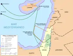 Incydent u wybrzeży Strefy Gazy miał miejsce 31 maja 2010 na wodach międzynarodowych Morza Śródziemnego, gdy izraelska marynarka wojenna (jednostka Shayetet 13) zaatakowała sześć statków przewożących 663 propalestyńskich działaczy z 37 państw[5], znanych jako „Pokojowa Flotylla”[6]. Akcja w izraelskiej armii otrzymała kryptonim operacja Morska Bryza[7][8].