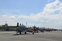 Obecnie Indonezja dysponuje dziesięcioma samolotami F-16 Fighting Falcon. Samoloty te stacjonują w bazie lotniczej w Malangu i służą u boku Northropów F-5E Tigerów II. Maszyny te wykorzystywane są jako myśliwsko-szturmowe. Funkcję tę pełnią razem z samolotami A-4E Skyhawk dostarczonymi z USA przez Izrael, razem z eskadrą szkoleniową TA-4H. Indonezja dysponuje także samolotami przeciwpartyzanckimi Rockwell OV-10F Bronco w liczbie dwunastu sztuk. Funkcję lekkich samolotów szturmowych mogą pełnić także samoloty BAE Hawk T-53 i Beech T-34C-1 Turbo-Mentor. Głównymi zadaniami samolotów są rozpoznanie, transport, zaopatrywanie w paliwo podczas lotu oraz operacje poszukiwawczo-ratownicze, szkoleniowe i rolnicze.