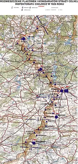 Już w 1918 roku powstające państwo polskie zaczęło tworzyć wyspecjalizowane formacje przeznaczone do ochrony granic Rzeczypospolitej. W kwietniu 1920 roku w Chojnicach stacjonował II dywizjon i 6 szwadron 4 pułku Strzelców Granicznych[1]. W kolejnych latach inne formacje ochraniały granice w tym rejonie. W 1921 roku w Chojnicach rozmieściło się dowództwo 20 batalionu celnego[2].