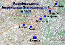 Rozkazem nr 3 z 27 lipca 1936 roku w sprawach reorganizacji placówek i zmiany przydziałów, komendant Straży Granicznej płk Jan Gorzechowski ustalił nowe rozgraniczenie pomiędzy inspektoratem „Łomża” a komisariatem wewnętrznym „Białystok”. Dla Inspektoratu Granicznego „Łomża” wyłącznie: wzdłuż drogi Małkinia- Kankowo-Niemiry-Zaręby, dalej drogą Zaręby-Nieszałty-Andrzejów-Grzymki- Polonia, dalej szosą Poloma-Osowiec-Zambrów-Menżęnin-Braniszewo-Tykocin- Krypno-Knyszyn-Jasionówka-Korycyn-Suchowok-Dombrowo-Lipsk[15][16].