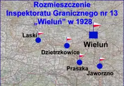 Rozkazem nr 11 z 9 stycznia 1930 roku w sprawie organizacji Wielkopolskiego Inspektoratu Okręgowego komendant Straży Granicznej płk Jan Jur-Gorzechowski zatwierdził granice inspektoratu granicznego: od zachodu – granica Inspektoratu Granicznego Ostrów, od południa – placówka SG „Kluczno” włącznie[10]. Kierownik Inspektoratu Granicznego „Wieluń” w dodatku do rozkazu organizacyjnego nr 3 z 19 lipca 1930 roku sprecyzował granice inspektoratu[11]: