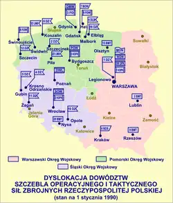 - ↑ Obejmujący od roku 1990 Dowództwa, jednostki organizacyjne MON. Schemat – Dyslokacja SZ RP.