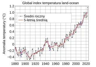 - ↑ Temperature data (HadCRUT, CRUTEM, HadCRUT5, CRUTEM5) [online], Climatic Research Unit (University of East Anglia) and Met Office [dostęp 2021-05-15] (ang.).
