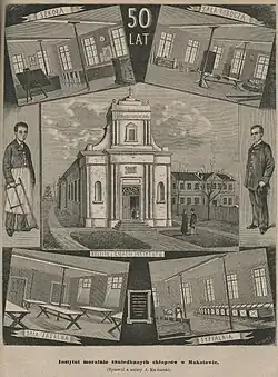 - 1 2 3 Franciszek Walczakiewicz, Dzieje Instytutu Moralnej Poprawy Dzieci i Krótka Historia Kościoła w Mokotowie, nakład autora, Warszawa, 1898, s. 56, 58