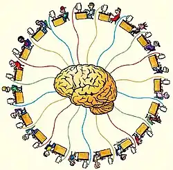 Filozof Pierre Lévy uważa zbiorową inteligencję jako „formę powszechnie rozproszonej inteligencji, stale ulepszanej, skoordynowanej w czasie rzeczywistym i widocznej w efektywnym wykorzystaniu umiejętności”[3], gdzie każda istota ludzka ma pewną wiedzę, ale żaden człowiek nie posiada całej wiedzy o wszystkim. Lévy uważa projekt inteligencji zbiorowej za „projekt humanistyczny”, grający istotną rolę w społeczeństwie obywatelskim m.in. dzięki zwiększonemu dostępowi do wiedzy[4].