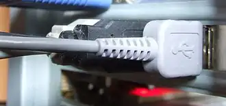 Czasami jako interfejs określa się gniazdo złącza wystające z urządzenia na zewnątrz, w które można wetknąć zgodną z nim wtyczkę innego urządzenia (zob. urządzenie peryferyjne). Aby dwa urządzenia mogły współpracować muszą mieć zgodne (kompatybilne) interfejsy. Interfejsem może być kabel łączący dwa urządzenia, ale zarówno wtyczki na tym kablu, jak i pasujące do nich gniazda są również interfejsami.