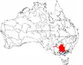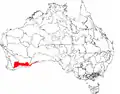 | Region / podregion IBRA | Kod IBRA[2][3] | Powierzchnia (ha)[2][3] | Jedn. adm.[a] | Zasięg na mapie |