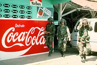 ![]() Żołnierze z 75 Pułku US Army Rangers przygotowują się do zajęcia La Comandancia w dzielnicy El Chorrillo, miasto Panama, grudzień 1989 | |||