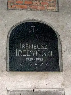 - ↑ Cmentarz Stare Powązki: IRENEUSZ IREDYŃSKI, [w:] Warszawskie Zabytkowe Pomniki Nagrobne [dostęp 2019-11-06].
