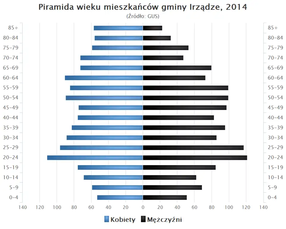 - Piramida wieku mieszkańców gminy Irządze w 2014 roku[1].