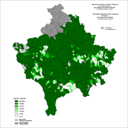 Po rozpadzie Jugosławii, kierownictwo nad społecznością muzułmańską w Kosowie przejęła Islamska Wspólnota Kosowa (alb. Bashkësia Islame e Kosovës), którą kieruje Wielki Mufti (obecnie jest nim Naim Tërnava). Według spisu ludności z 2011 ponad 95% ludności Kosowa deklaruje się jako muzułmanie. Większość z nich nie praktykuje deklarowanej religii[4]. Większość spośród kosowskich muzułmanów stanowią Albańczycy, ale z islamem w Kosowie identyfikują się także Turcy, Romowie, Boszniacy i Goranie.