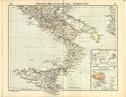 Południową część Italii wraz ze wschodnią częścią Sycylii w czasach starożytnych określano często mianem Magna Graecia (Wielka Grecja) ze względu na dużą liczbę znajdujących się tam kolonii greckich.