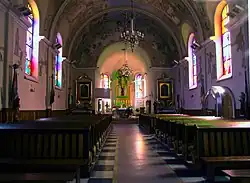 Kościół został wzniesiony w 1363 roku. Był to kościół gotycki z kamienia i przetrwał w takiej formie do pierwszej połowy XX wieku. W latach 1930–1931 przeszedł remont. Do dzisiaj przetrwały: gotycka kamienna chrzcielnica, barokowy ołtarz główny oraz odlany w 1687 roku dzwon z plakietką Matki Bożej z Dzieciątkiem, umieszczony w wolno stojącej dzwonnicy[16].