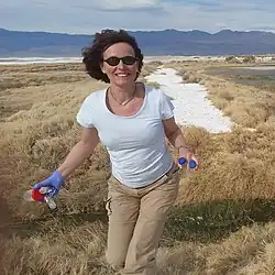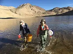 ![]() Iwona Jasser przygotowuje się do pomiarów podstawowych parametrów wody z jeziora | |