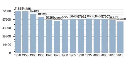 Zmiany w populacji Izumi w latach 1950–2015: