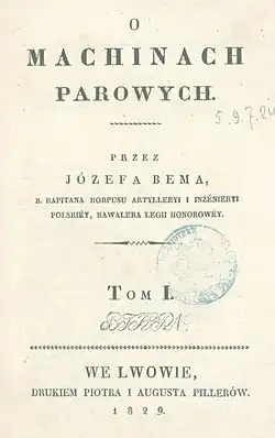 - ↑ Józef Bem, O machinach parowych, Lwów: Piotr i August Pillerowie, 1829.