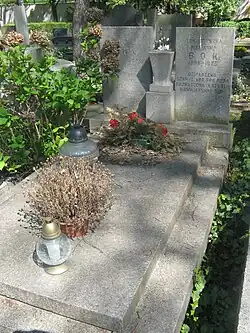 Pochowany na wojskowych Powązkach (kwatera 2C-10-2)[1].