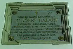 - ↑ Kronika. Uczczenie zasług ś. p. dra Józefa Galanta. „Gazeta Sanocka”, s. 3, nr 80 z 9 lipca 1905.