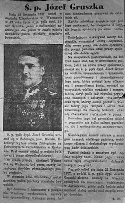 - ↑ Podziękowanie Lidii Gruszkowej wszystkim, którzy wzięli udział w pogrzebie ś.p. męża..., „Polska Zbrojna” Nr 335 z 4 grudnia 1937 roku, s. 5. Nekrolog, „Polska Zbrojna” Nr 322 z 21 listopada 1937 roku, s. 4.