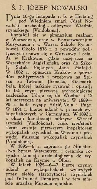 - ↑ J. Wawrzeniecki, Józef Nowalski, „Kwartalnik Klasyczny" 1928, t. 2, nr 4, s. 453.