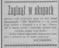 - ↑ Kurier Płocki 1920 nr 201, s.4, 1920.