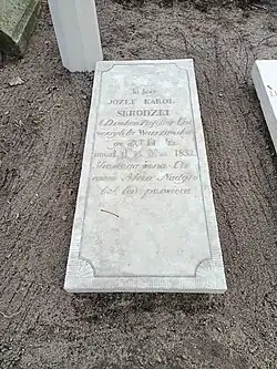 - ↑ Cmentarz Stare Powązki: JÓZEF KAROL SKRODZKI, [w:] Warszawskie Zabytkowe Pomniki Nagrobne [dostęp 2014-12-31].