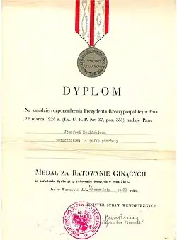 - Medal za Ratowanie Ginących (26 września 1932)[41]