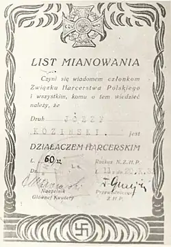- Honorowy Krzyż Harcerski z Czasów Walk o Niepodległość (17 stycznia 1939)[40]
