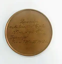 - ↑ Medal nadany zarządzeniem Ministra Spraw Wojskowych, marszałka Józefa Piłsudskiego, o sygnaturze B.P.L. 18689-I-29.