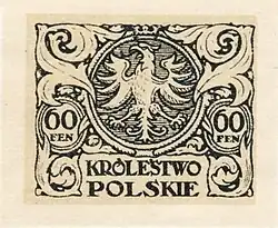 - Królestwo Polskie – 60 fen, 1918 – projekt konkursowy[8]