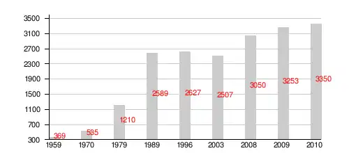 | Rok | 1959 | 1970 | 1979 | 1989 | 1996 | 2003 | 2008 | 2009 | 2010 |