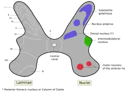 Jądro piersiowe tylne (łac. nucleus thoracicus posterior[1][2][3]) – niewielka, parzysta blaszka istoty szarej rdzenia kręgowego, rozciągająca się od segmentu (C8) Th1 do L1 (L3) w podstawie rogu tylnego rdzenia. Według podziału Rexeda jądro piersiowe tylne znajduje się w blaszce VII. W rdzeniu przedłużonym odpowiada mu jądro klinowate dodatkowe. W jądrze piersiowym tylnym leżą drugie neurony drogi rdzeniowo-móżdżkowej tylnej[4][5].