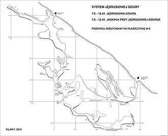 - 1 2 3 4 5 6 7 Jaskinie Polski, Państwowy Instytut Geologiczny – Państwowy Instytut Badawczy – Jędrusiowa Dziura [online], jaskiniepolski.pgi.gov.pl [dostęp 2016-03-12].