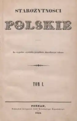 - ↑ „Starożytności polskie. Ku wygodzie czytelnika porządkiem abecadłowym zebrane”, red. Jędrzej Moraczewski, Emil Kierski, Antoni Popliński, Poznań wyd. Jana Konstantego Żupańskiego, 1842–1852.