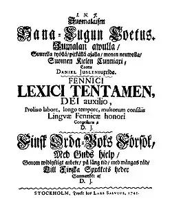 - ↑ Praca zbiorowa: Nykysuomen sanakirja. Porvoo: WSOY, 1978. ISBN 951-0-02764-2.