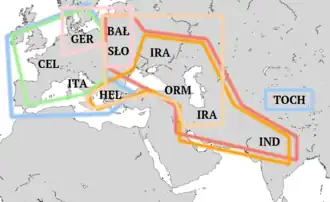 ![]() Zasięg geograficzny rodziny indoeuropejskiej | |